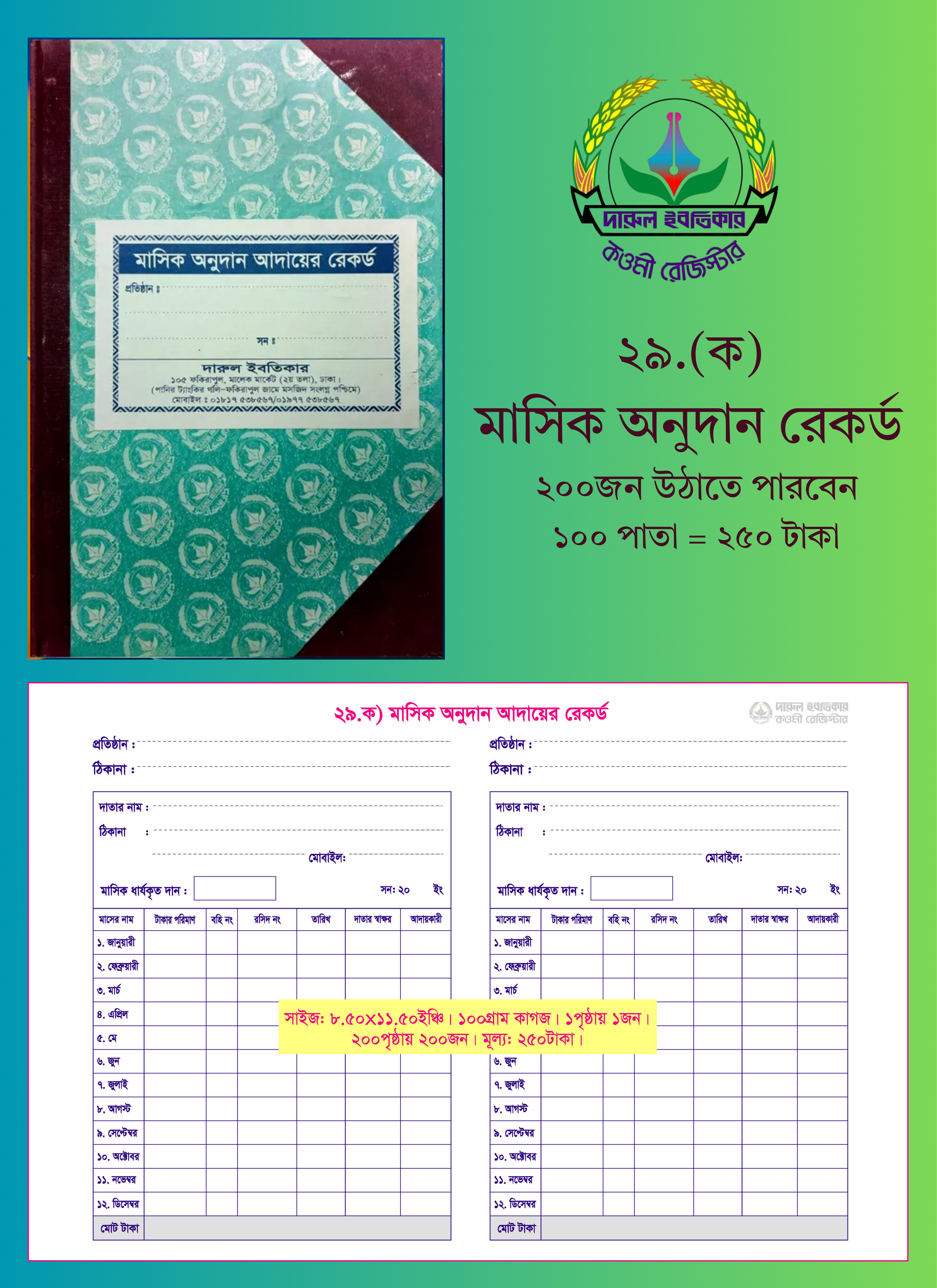 ৮. কিতাব বণ্টন রেজিস্টার