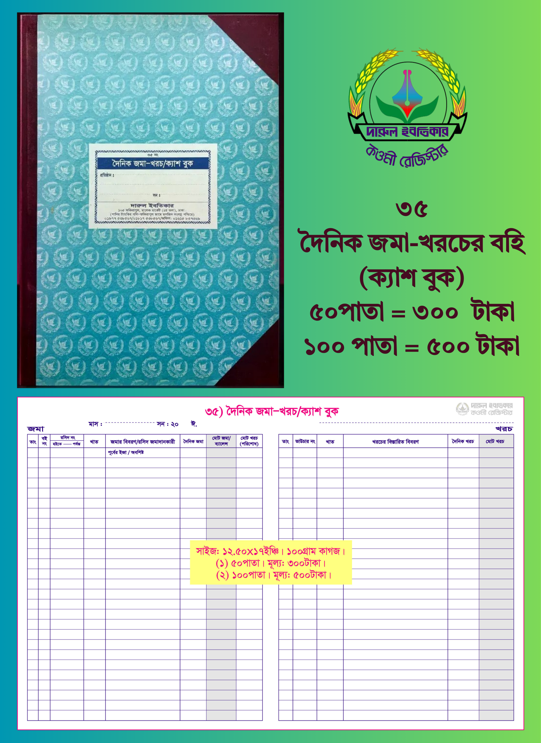 ৩৫. দৈনিক জমা-খরচের বহি (১০০পাতা)