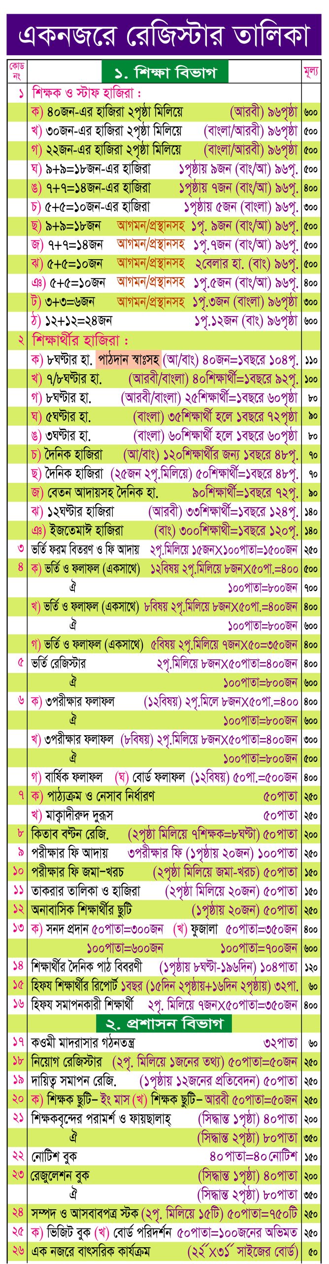 ৫. ভর্তি রেজিস্টার (১০০পাতা)