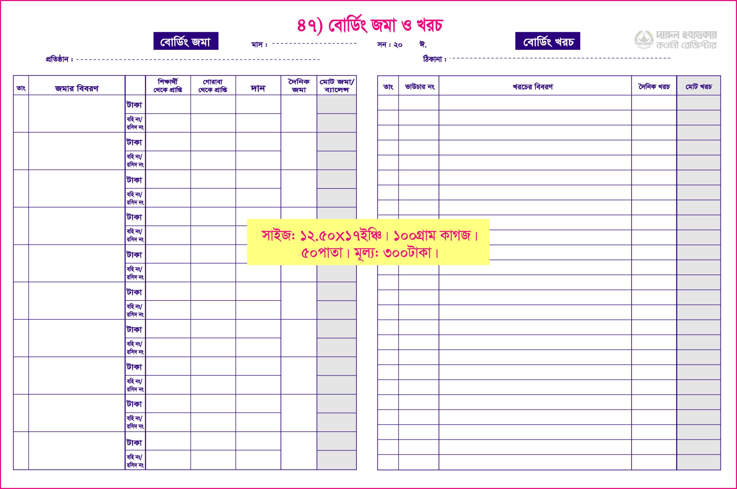 ৪৭ বোর্ডিং জমা ও খরচ