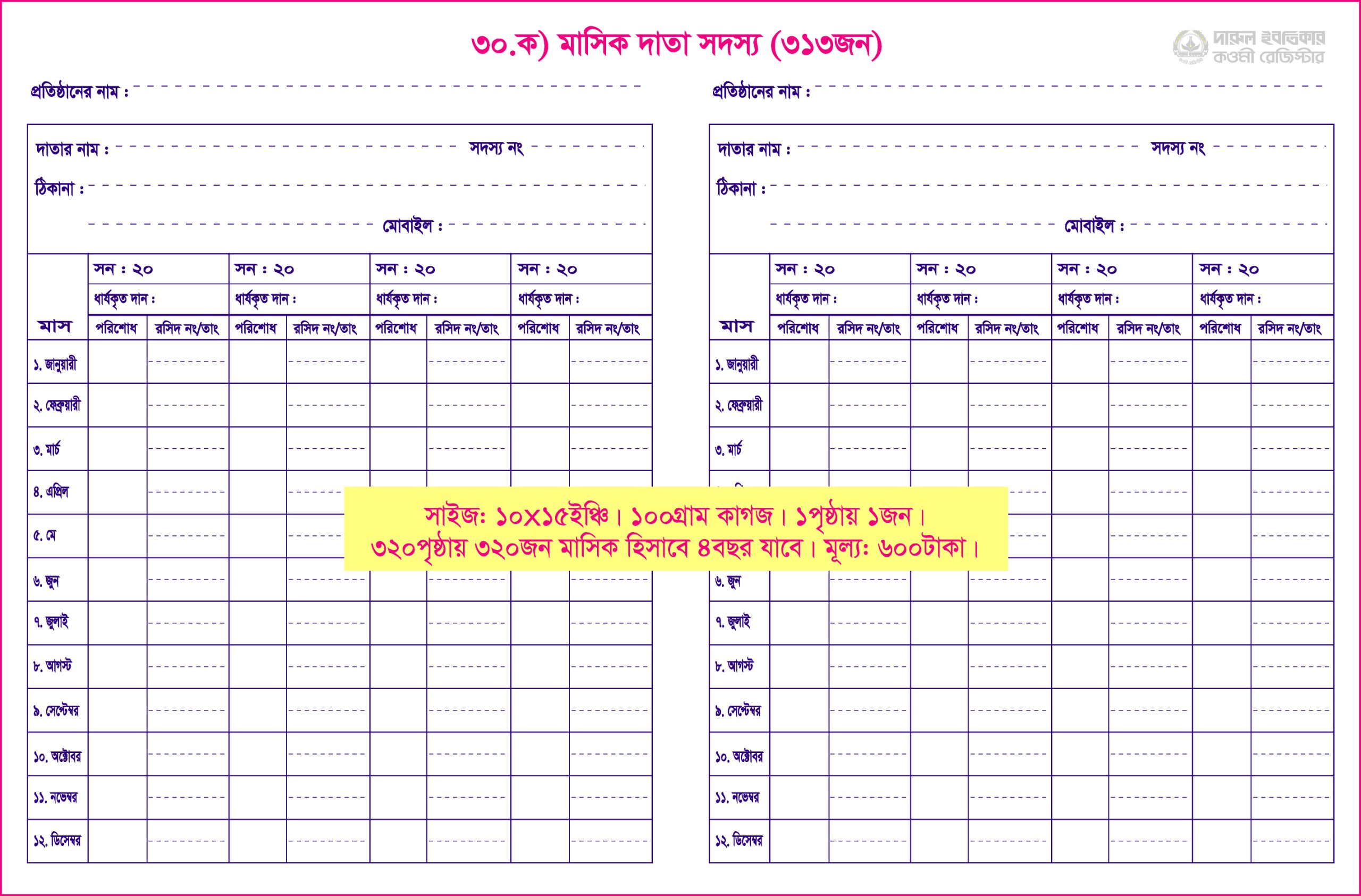 মাসিক দাতা ৩১৩জন